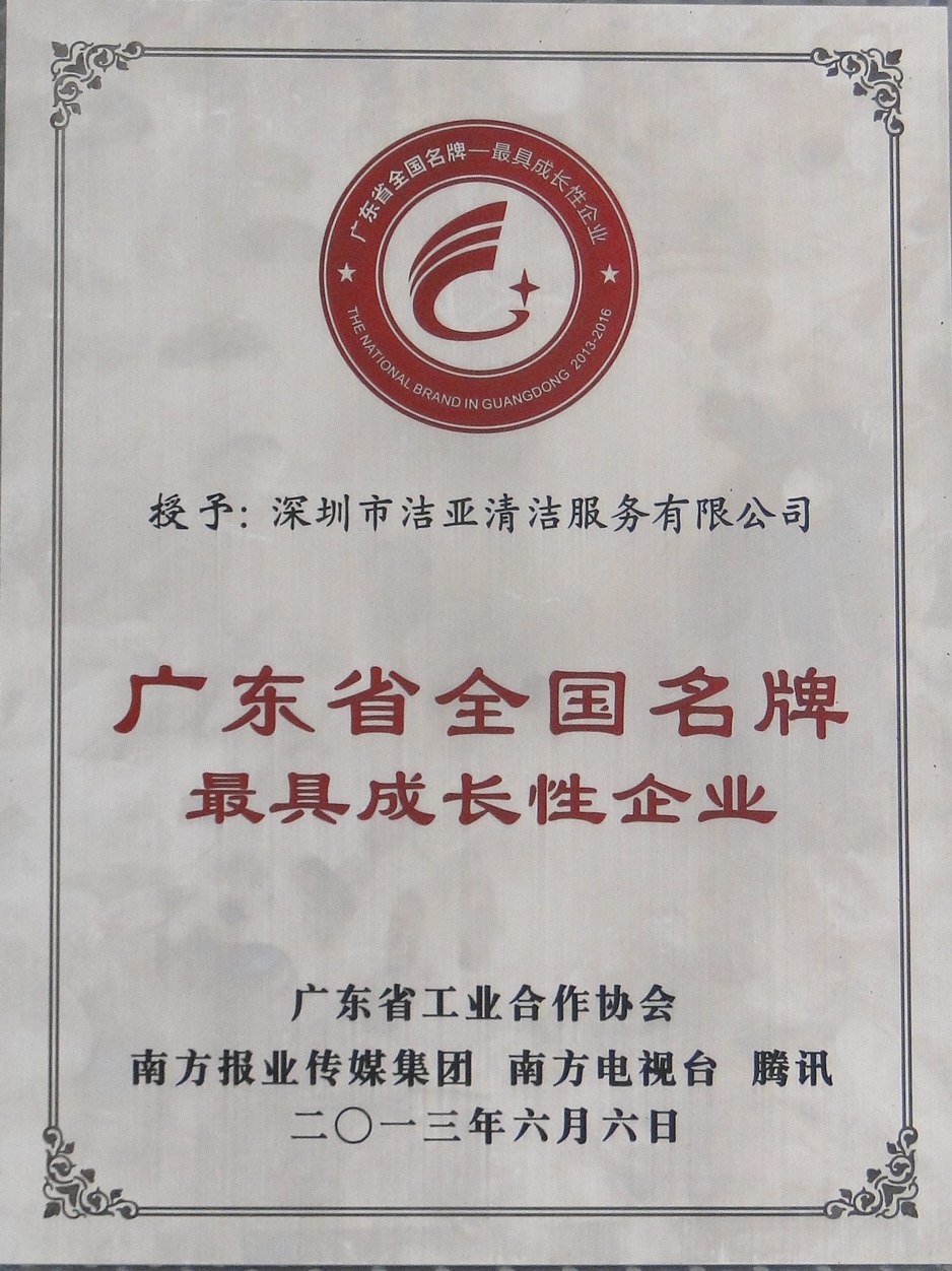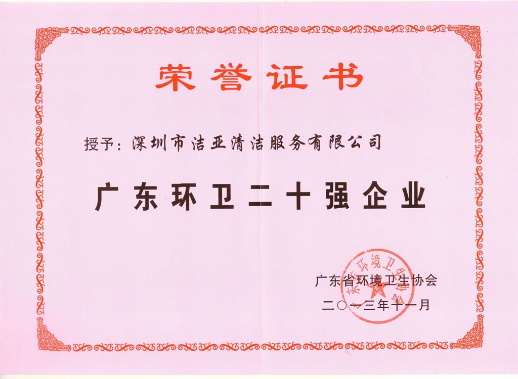 洁亚公司先后获得中国城市环境卫生协会副主任委员单位、中国清洁服务行业百强企业、广东省服务业百强企业、广东省环卫行业先进单位、广东省全国名牌——最具成长性企业、广东省环卫20强、广东省诚信示范企业、广东省守合同重信用企业、深圳市500强企业、深圳市质量百强企业、深圳市行业领袖百强企业、深圳市十佳优质服务企业、浙江省清洗保洁行业优秀企业等150多项荣誉称号。