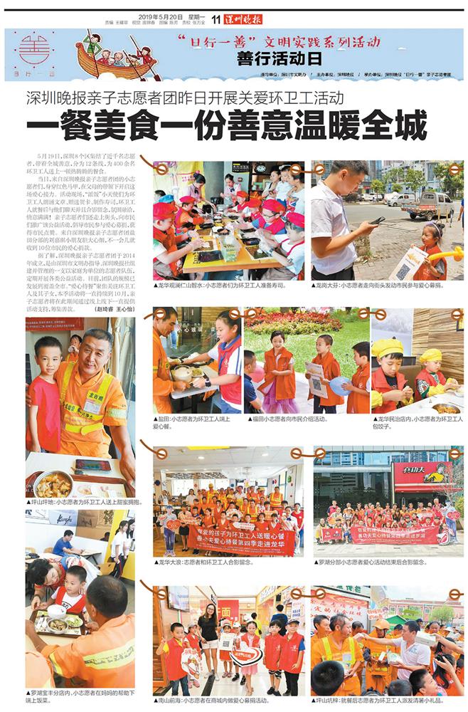 5月20日,《深圳晚报》等媒体对此次爱心待餐活动进行了详细的报道,对洁亚环保公司和朱总的公益事迹给予了充分的肯定。