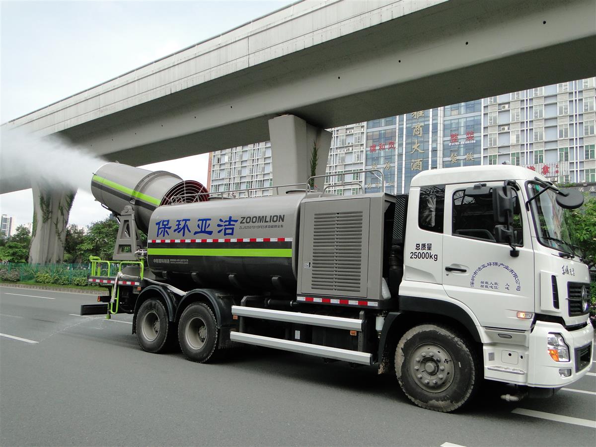 5月16日,洁亚新添置的"重武器"多功能抑尘车上路开工啦!这台将近12米长的新装备,是万搏足球不久前从中联重科采购的多功能抑尘车,可以“炮轰”雾霾!轻启开关,调整好3米多长"炮"身的角度,瞬时,巨大而稠密的水雾从百余个细嘴喷射而出,将空气中的尘霾兜头"俘虏",除了天热时能有效降低路面温度和近地面气温外,它最主要的功能就是具有抗霾降尘、冲洗路面和浇灌绿化的效果。