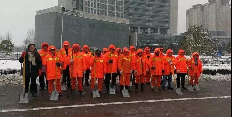 一锄锄、一块块,辖区内每一处被冰雪覆盖的路面在洁亚人通宵达旦的作业下逐渐恢复本色...他们的衣帽被雨雪渗透,双手被冻得通红,却依然顶风前进,那一抹抹橙色是风雪中最美丽的风景!向你们致敬!