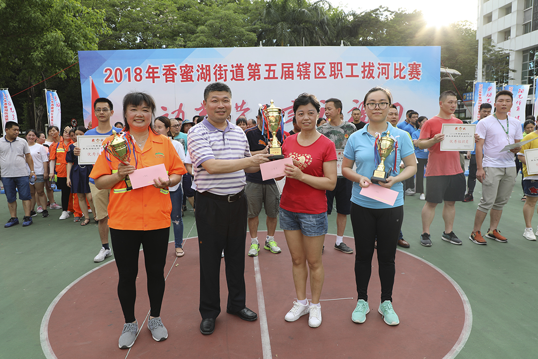 经过努力拼搏,洁亚公司在拔河比赛中获得了第三名!比赛结束后,街道办负责人给各获奖队伍颁发奖金和奖杯!将整个活动划上完美的句号。 |