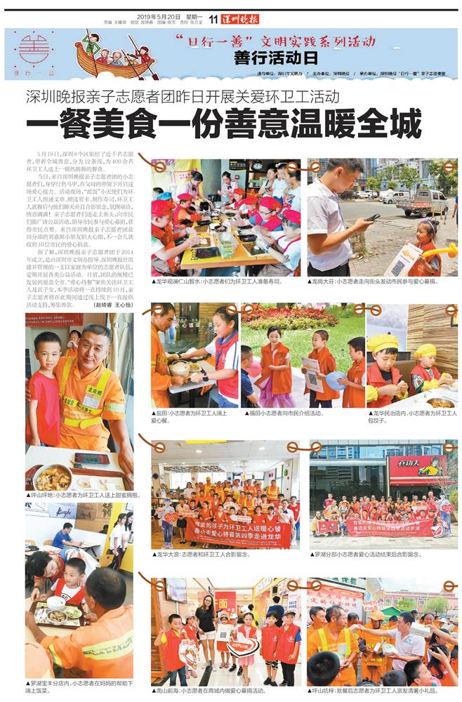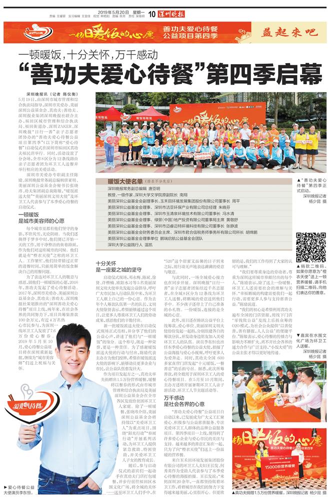 5月20日,《深圳晚报》等媒体对此次爱心待餐活动进行了详细的报道,对洁亚环保公司和朱总的公益事迹给予了充分的肯定。