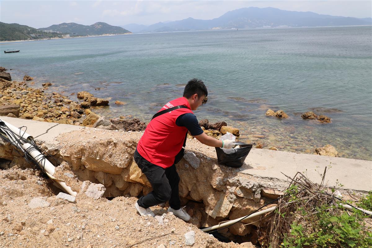 南澳东涌海岸线风景优美,游客众多,因此地远离深圳市区,生态环境保护得很好,没有过度开发,保持了原生态的秀丽风景,这里天更蓝、水更清,已成为深圳市民出游的首选。但出游的部分市民并没有很好地养成不乱扔垃圾的习惯,仍然可见随手丢弃的纸巾、果皮、矿泉水瓶、饭盒、零食包装袋及用过的塑料袋等垃圾。你看,洁亚党员和义工们发扬不怕苦不怕脏不怕累的精神,正在一个一个清捡它们呢,随着这些垃圾被清理,此片海岸线又保持了她特有的魅力!