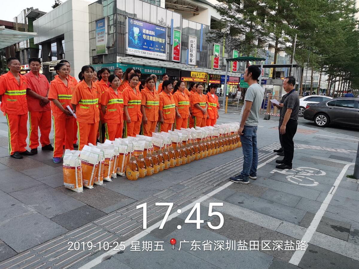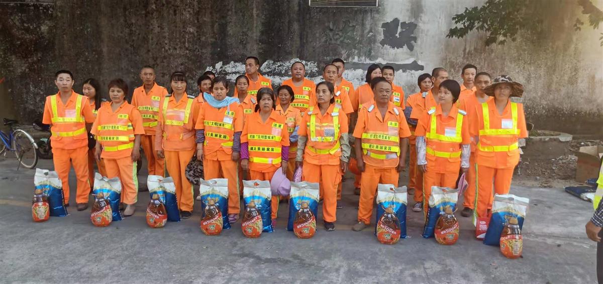 从10月21日到26日,洁亚各项目所在区和街道、社区就为我们环卫工人精心准备了大米和食用油,区书记、街道书记及领导们亲自到项目上、环卫工人作业岗位上,把一袋袋大米、一桶桶食用油交到我们环卫工人手中,并对她们表示亲切的慰问,并与她们一起劳动,一起交流环卫作业心得,一起有说有笑,一起为城市的洁净出力……