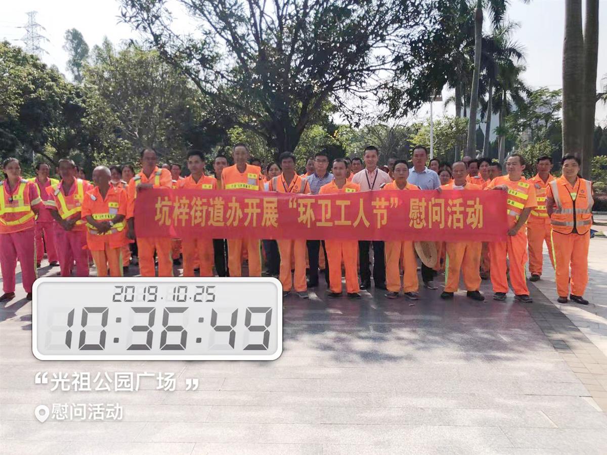 今年的环卫工人节热闹纷呈,各区、各街道、各社区、爱心企业、热心市民等纷纷组织开展了关爱环卫工人活动,表达对环卫工人的敬意和关怀,来看看咱们的洁亚家人们是怎么度过环卫节的吧:有环卫替岗的、有请环卫工人聚餐的、有给优秀企业优秀项目颁奖的、有组织看《我和我的祖国》电影的、有发大米和食用油开展慰问活动的……一片喜气洋洋、热闹非凡,环卫工人个个露出开心幸福的笑容。