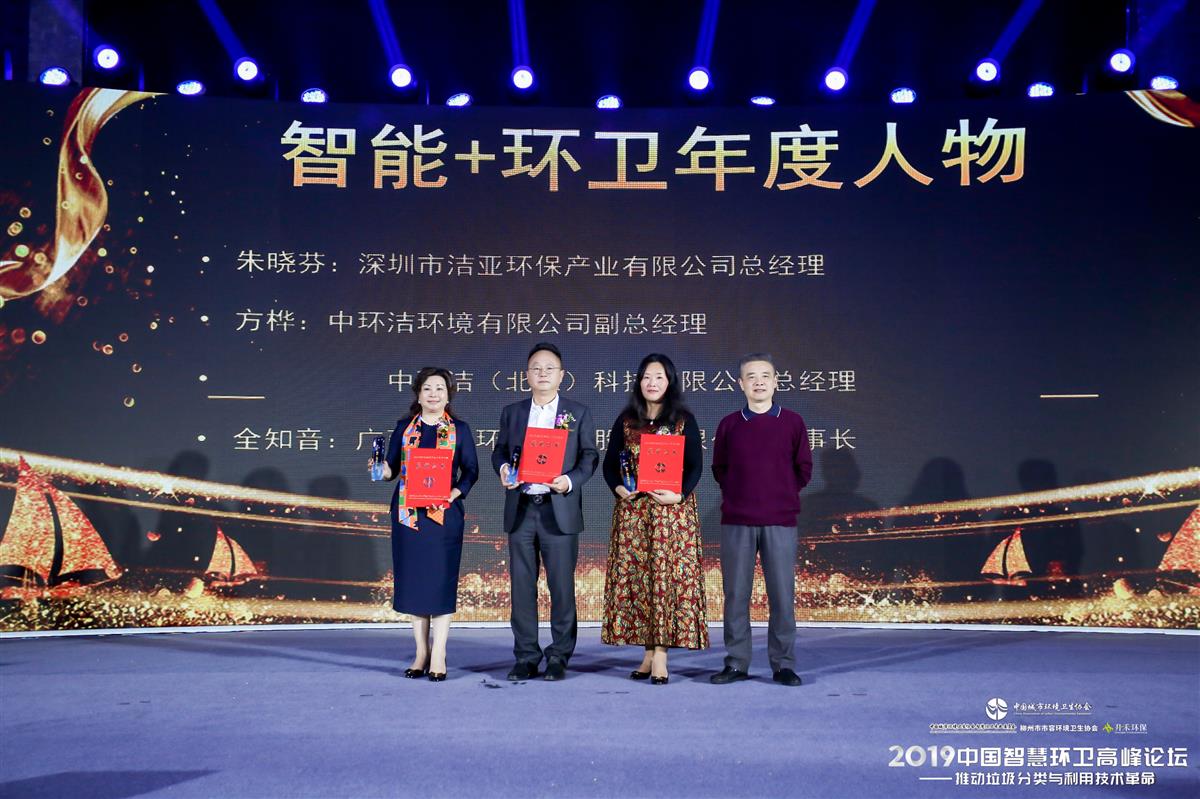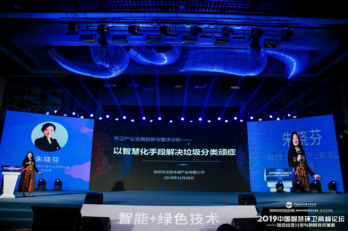 11月25日至27日,由中国城市环境卫生协会主办的2019中国智慧环卫高峰论坛在广西柳州隆重举行,洁亚环保总经理朱晓芬参加了此次高峰论坛对话,作了主题为“以智慧化手段解决垃圾分类顽症”的精彩分享,并获评“智能+环卫年度人物”。洁亚环保获得此次论坛“智能+垃圾清运典型案例”、“智能+垃圾分类典型案例”,并获得下一届中国智慧环卫高峰论坛承办权,洁亚环保总经理朱晓芬现场接过了“承办单位流动红旗”。