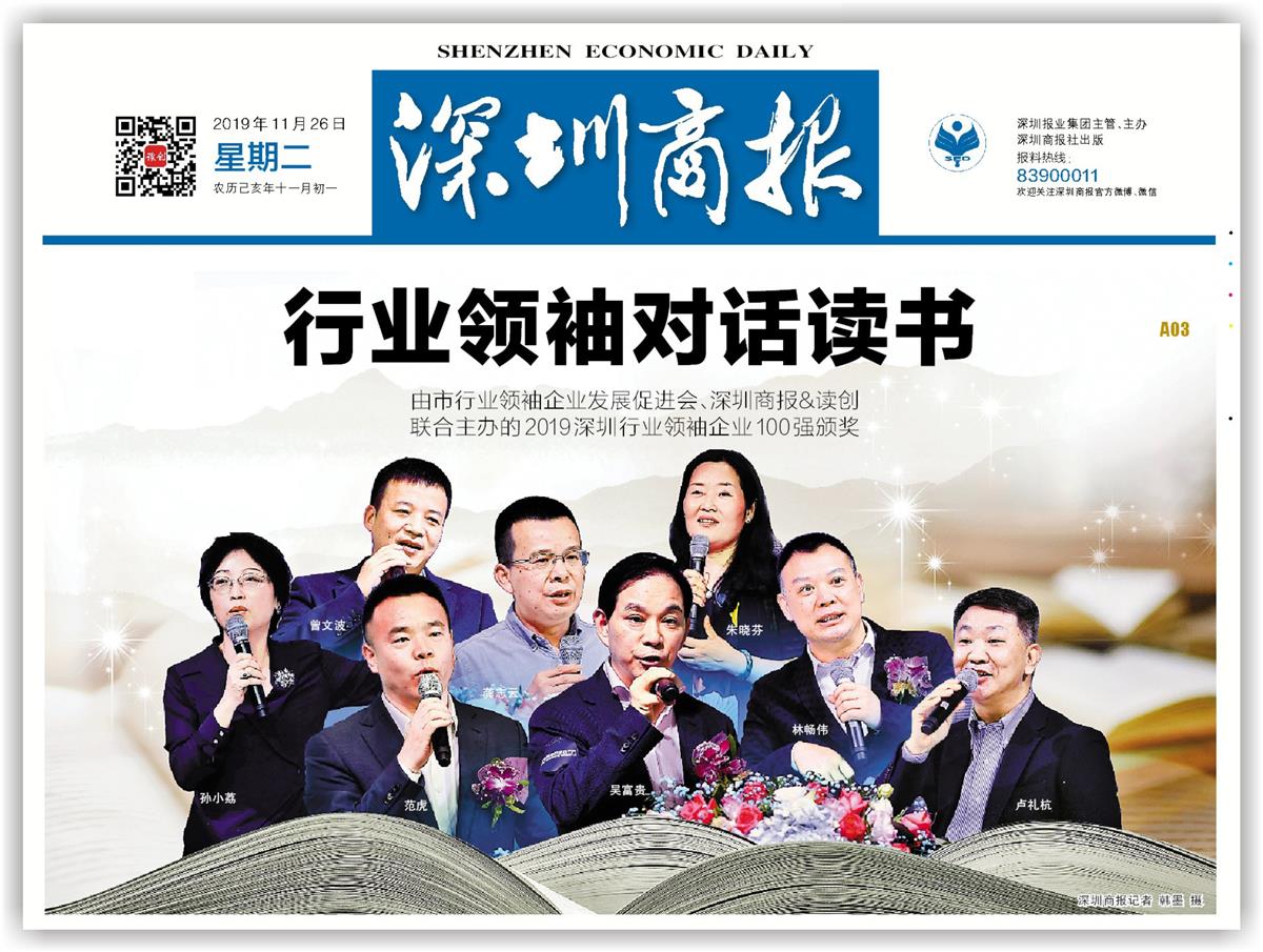 由深圳市行业领袖企业发展促进会、《深圳商报》共同主办的行业领袖对话读书月暨2019深圳行业领袖企业100强颁奖”活动于11月25日下午在深圳罗湖举行。该活动是本届深圳读书月的重头戏,也是读书月史上首次企业家对话和开讲。洁亚环保总经理朱晓芬应邀出席了本次活动,并作为深圳行业领袖百强做了主题分享,参加了“2019深圳行业领袖企业百强”授牌仪式。