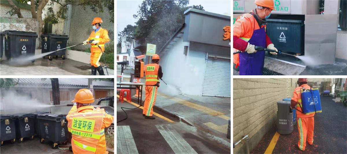 在疫情防控期内,洁亚承担了责任辖区所有检查关卡、隔离区的消毒工作、设置的临时公厕管养服务、垃圾回收消毒等工作。