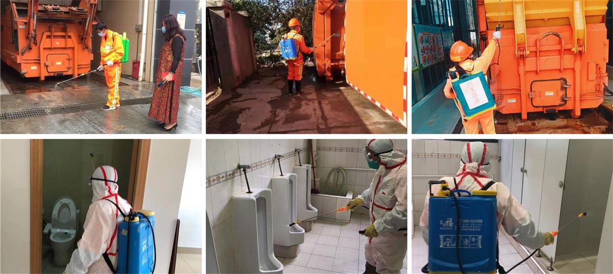 从黎明到黄昏,从垃圾收集点到垃圾中转站,从城中村到市政道路,尽管每天路面上很少看到行人,但始终能看到他们背着工具,和同事忙碌着喷洒消毒液的身影;在当前疫情防控的关键时期 ,他们一心扑在工作上,默默无闻的奉献。虽然每天的工作任务繁重,个别人心里都有些许的慌张,但他们却常给同事们打气:“前方的医生和护士在一线救治患者,我们在后方清理垃圾和消杀病毒,尽自己最大的努力防止这场疫情在我们工作的范围内继续扩大,希望国家能在这场没有硝烟的战争中以最快的速度取得胜利”。 疫情面前不退缩,敢打必胜洁亚人! 在平凡的岗位上,他们每天都在践行着自己的职责,为尽快打赢这场疫情阻击战挥洒着自己的汗水!