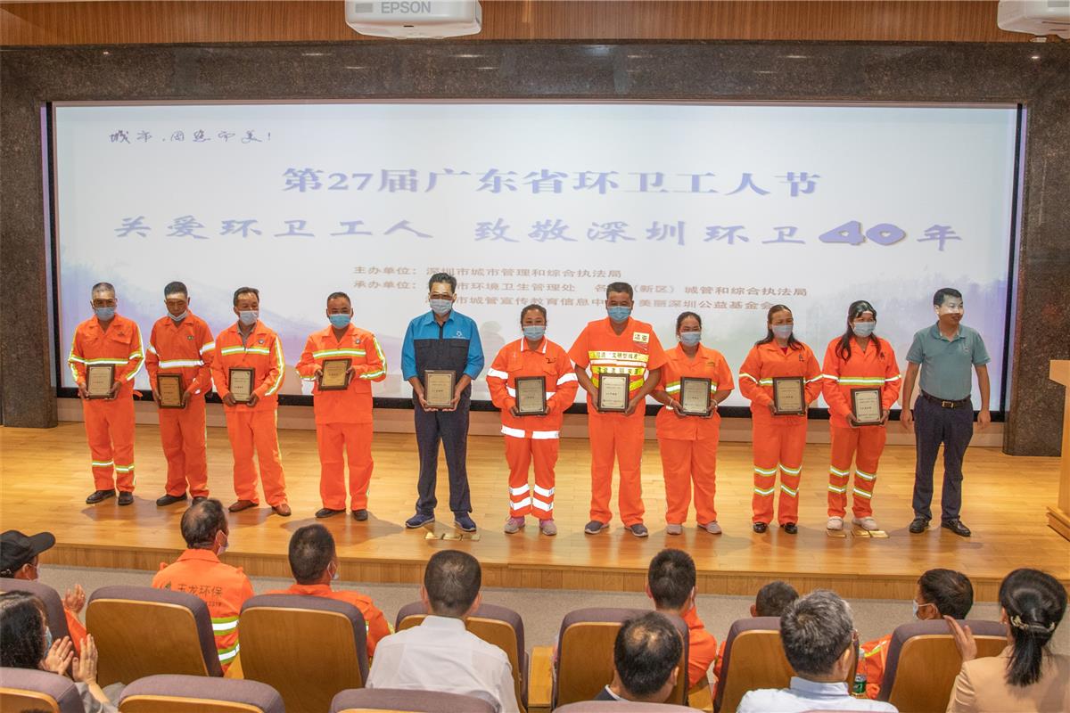 今天上午,由市城市管理和综合执法局联合美丽深圳公益基金会主办的“广东省第二十七届环卫工人节致敬深圳环卫40年.40人活动 ”在深圳仙湖植物园国际会议厅隆重举行。在深圳经济特区建立40周年之际,对深圳环卫服务年限达30年的40名一线环卫作业人员进行了表彰。洁亚环保严国会等多名员工入选深圳环卫40年.40人榜单,并在此次盛会上获得了表彰。洁亚环保创始人朱晓芬参加了本次盛会,并为优秀代表颁奖。