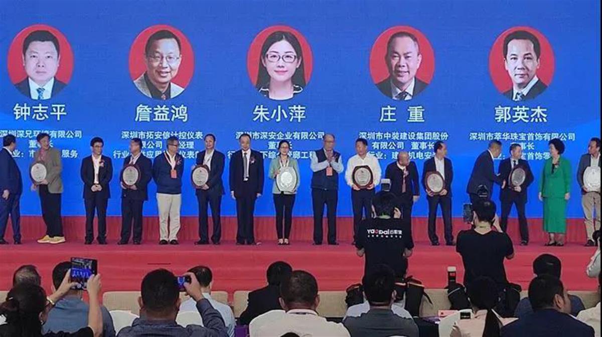 ▲发布会还为衡佳集团总裁兼深安企业董事长、洁亚环保董事长朱小萍等荣获第四届“深圳百名行业领军人物”隆重授牌。