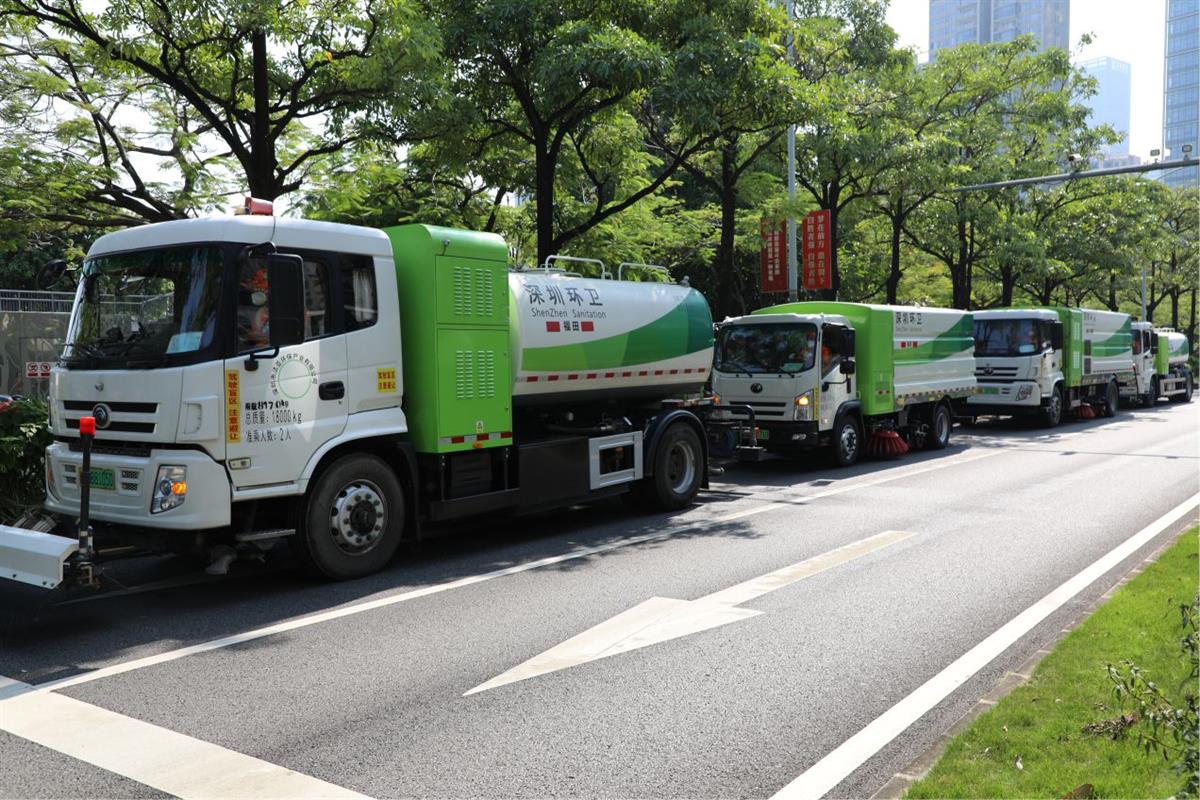 洁亚环保采用新能源纯电动大型环卫作业车辆用于城市主干道和所有机动车道作业,包括机扫车、水车、平板车(桶装车)、垃圾自装卸式车、勾臂车、厨余垃圾收运车、雾炮车等,全部使用新能源纯电动车辆,不再使用燃油车,为深圳减少碳排放和碳峰值作出贡献。针对环卫工人老龄化、作业效能较为低下问题,洁亚环保购置了大批的小型机械设备代替人工作业,包括小型高压冲水车、小型扫路车、小型清扫机等新能源纯电动环卫车辆,用于背街小巷、人行道、辅道、公园、广场、商业街的清扫和冲洗,使机械化作业全面普及服务区域,节省了大量的人力成本,同时也提高了工作效率,提升了环境卫生质量,也减轻了环卫工人作业强度。