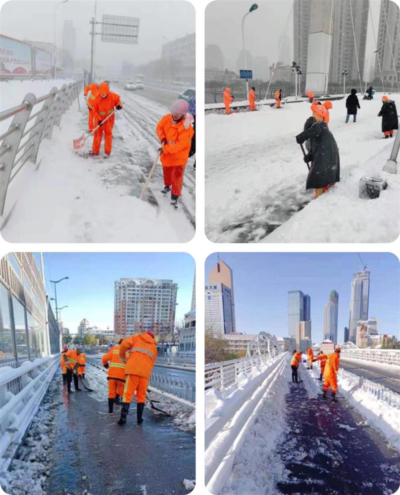 天津地区冬天极为寒冷,道路经常被雪覆盖,洁亚成立了除雪破冰应急小组,全力保障市民出行。一旦出现雪情,立即动用一切机械进行除雪作业,人机结合,按照“先立交、后涵洞”“先主干、后支路”和“先打开一条路,再向两边扩展”的作业顺序,合理安排除雪作业路线,有序调度除雪作业车辆,严密除雪作业程序,提高除雪工作效率。清融雪作业结束后,立即开展雪后道路清洗工作,结合气象条件采用机扫和洗路等方式,迅速恢复道路环境卫生面貌。洁亚每年的除雪破冰工作,都受到了当地政府和居民的表扬。
