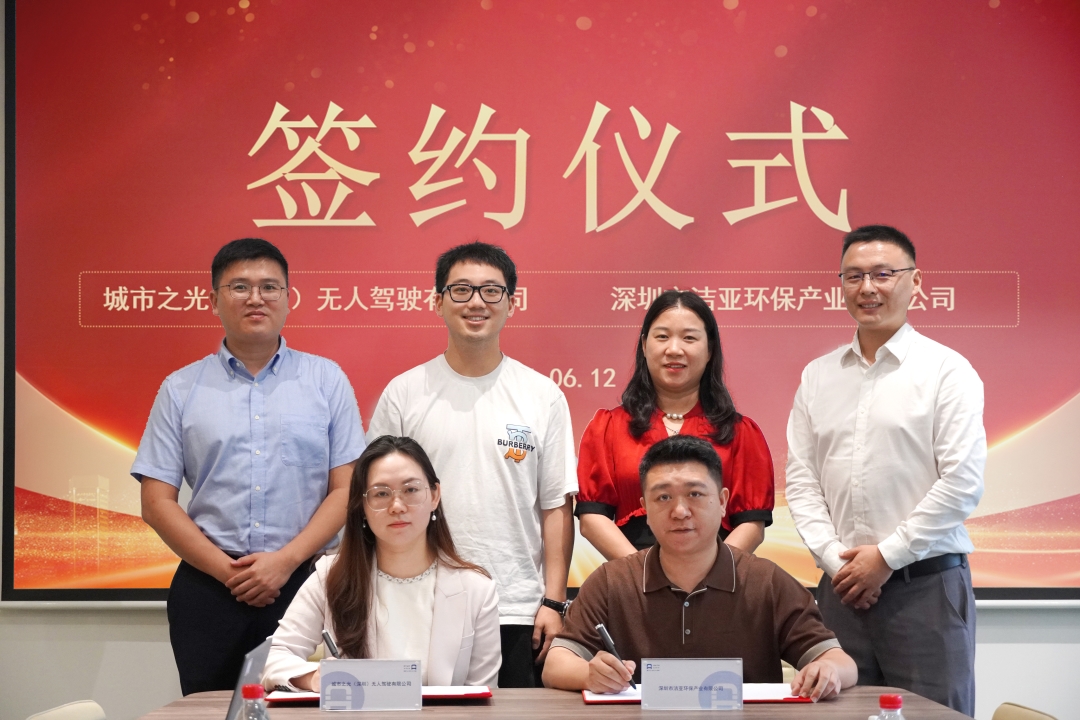 近年来,随着科技的不断进步,室外无人环卫清洁机器人技术已经逐步走向成熟,机器代人、环卫无人智慧化渐渐成为大势所趋。6月12日上午,洁亚环保与城市之光(深圳)无人驾驶有限公司(以下简称“城市之光”)签署了全面战略合作协议,双方将通过优势资源分享及互补、力争全方案、宽领域、多场景地构建城市智慧服务战略伙伴关系,共同在自动驾驶环卫设备、城市运营服务等重要事项达成深度合作,联合打造双智城服新运营模式。城市之光董事长吴恩光、城市之光运营VP余沁、洁亚环保运营管理中心VP张启煜、洁亚环保运营管理中心深圳区域事业部总经理廖冬花和区域总监杜孝政等出席签约仪式。
