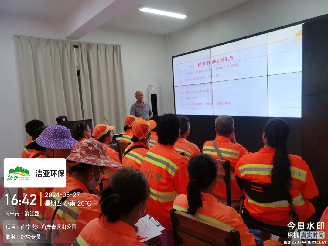 安全教育培训是安全生产标准化建设的重要基础性工作,为高效统筹培训工作成效,洁亚环保聚焦“畅通生命通道”这一活动主题,开展了垃圾分类、夏季作业、道路交通安全、雷雨天安全避险等宣传教育活动,尤其对郊区保洁作业,雷雨天气预防措施进行详细讲解。