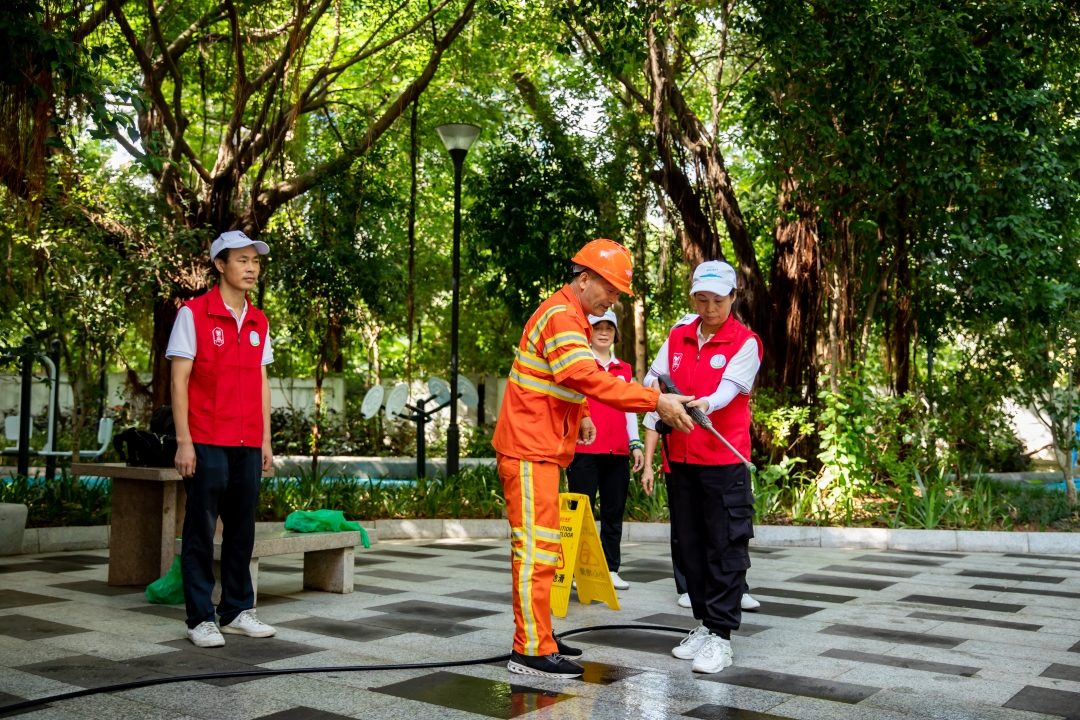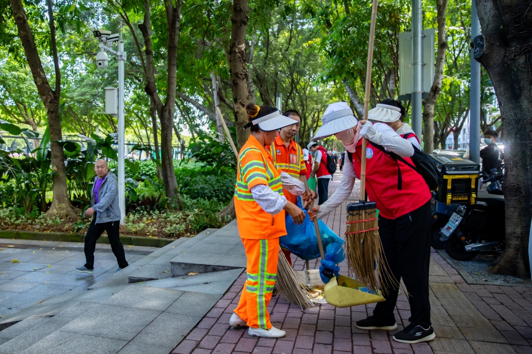 活动当天,“美丽深圳”文明使者志愿服务队志愿者齐聚洁亚环保香蜜湖项目部,他们身穿统一的志愿者工作服,手持扫帚、垃圾钳等工具,准备开始他们特殊的“工作”体验。在洁亚环保项目人员的指导下,志愿者们被分配到不同的路段,与环卫工人进行了一对一的换岗体验。