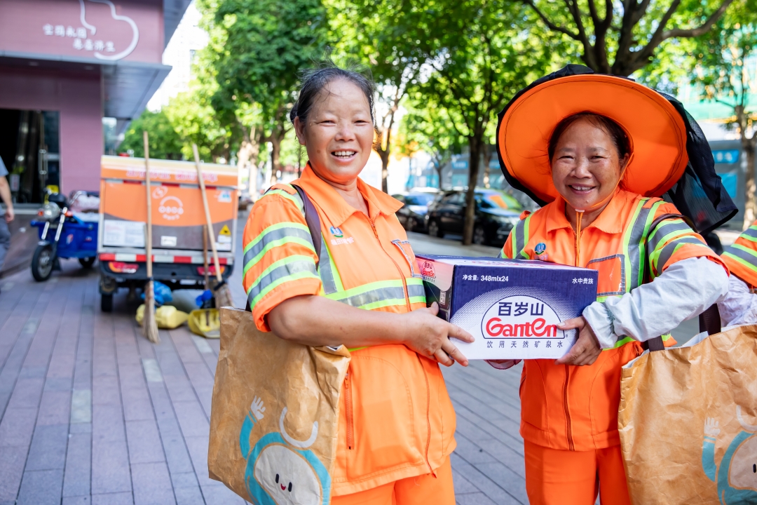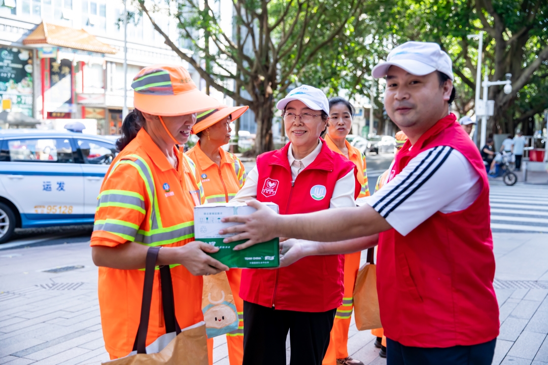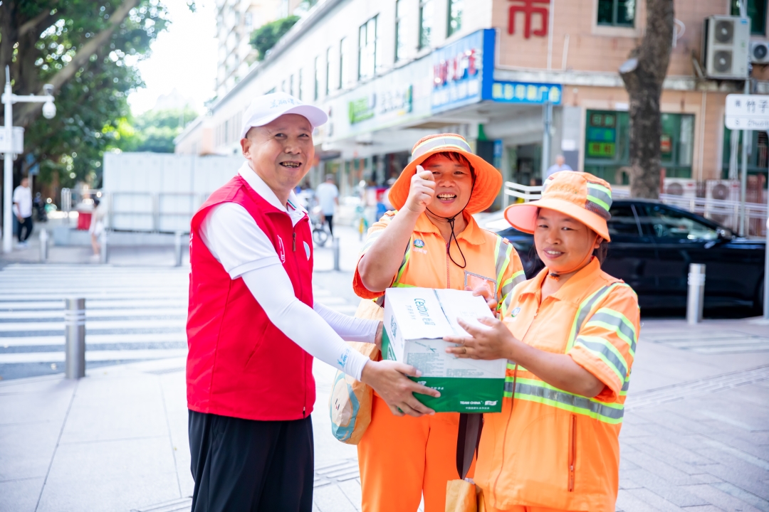 在“清凉包”的传递中,志愿者们将清凉与关爱送到每一位环卫工人的手中。这些包含瓶装水、驱蚊水、冰袖、便携小风扇等实用物资的“清凉包”,不仅为环卫工人们带来了身体上的凉爽,更在心灵上给予了他们莫大的鼓舞与慰藉。
