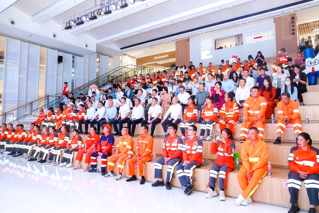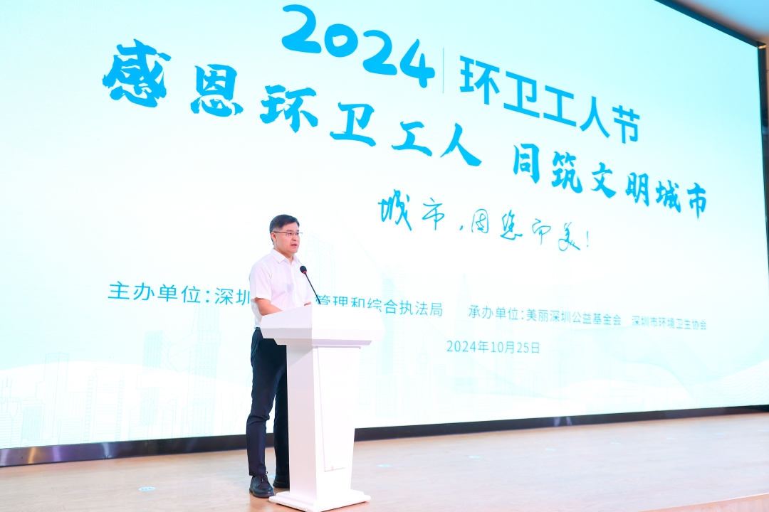 当天,市城管和综合执法局联合美丽深圳公益基金会、深圳市环境卫生协会在中心书城南区大台阶举办“感恩环卫工人 同筑文明城市”活动,对全市100名从事一线环卫工作的优秀环卫工人进行褒扬。深圳市副市长代金涛,全国政协委员、美丽深圳公益基金会名誉理事长、信义玻璃控股有限公司董事局主席李贤义,市城管和综合执法局局长张国宏,市总工会副主席李红兵,以及60名环卫工人代表、基金会理事单位、爱心企业、爱心商户代表出席了活动。活动现场为10名优秀环卫工人代表颁发荣誉证书。