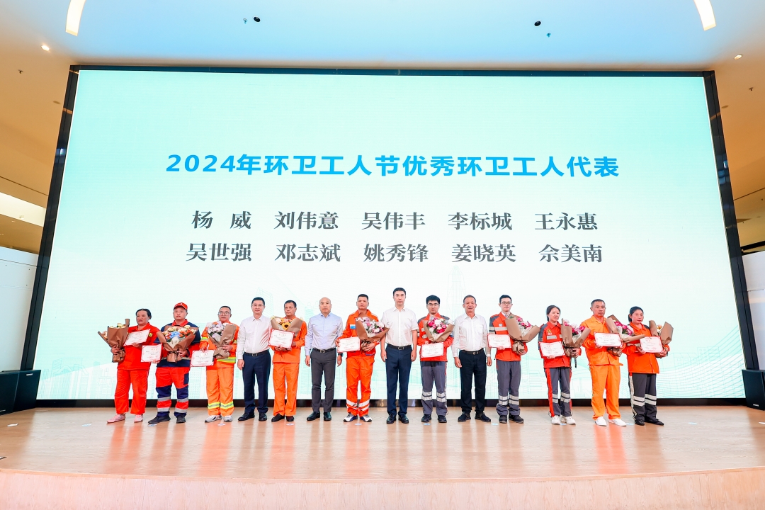 值得一提的是,洁亚环保共有8位优秀员工在此次表彰中脱颖而出,荣获殊荣。其中,邓志斌作为环卫工人的杰出代表,荣耀登台接受了这份沉甸甸的荣誉,不仅为他个人的辛勤付出赢得了认可,也为洁亚环保赢得了广泛的赞誉。