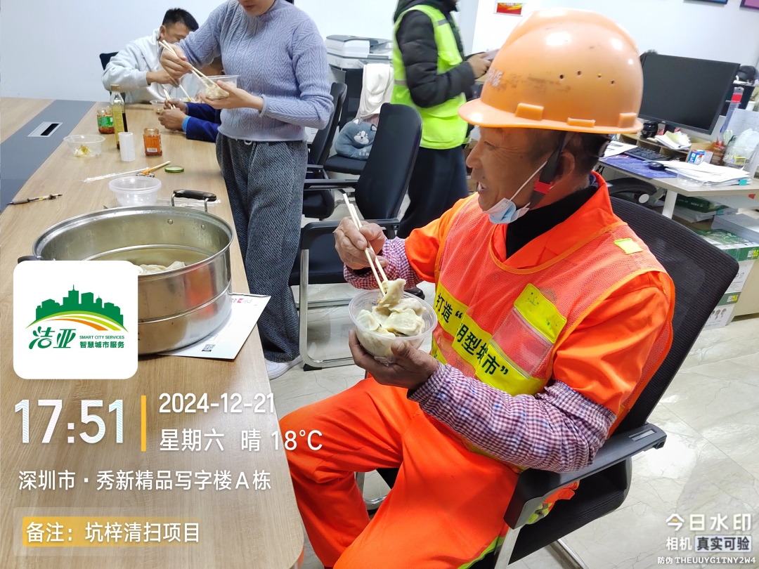 无论是饺子还是汤圆,都共同承载着团圆的情感。除深圳项目外,洁亚环保各地项目也以不同形式开展冬至活动,一锅载满情谊的饺子、一碗热气腾腾的汤圆、一句暖心的问候,让项目一线的工作人员在寒冬中感受到阵阵暖意。