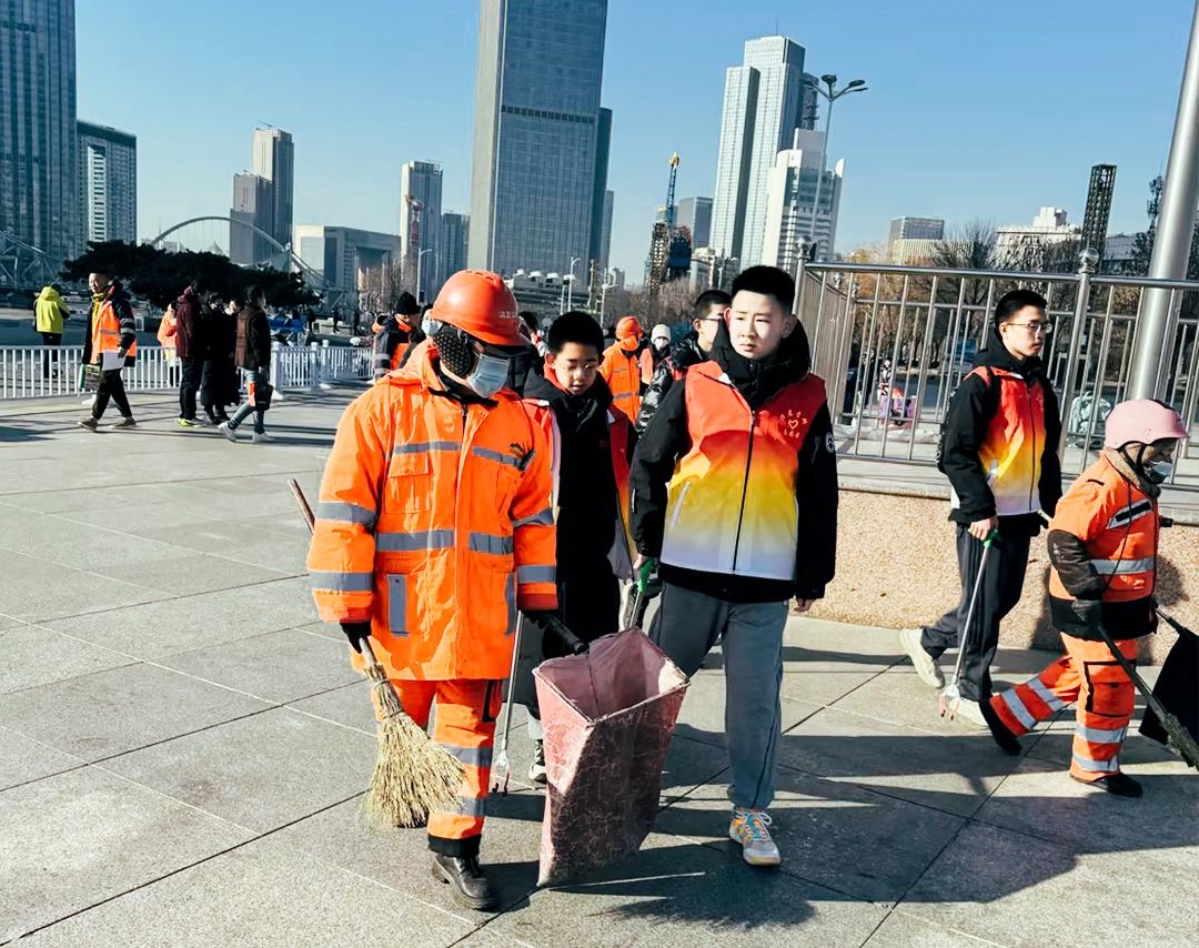 2025 年春运开启,天津站迎来客流高峰。洁亚环保积极携手 “浩晨青研” 志愿者服务团队,共同开展 “青春暖冬行 - 逢(运)相伴” 助力春运活动,为旅客营造整洁、舒适、温馨的出行环境。