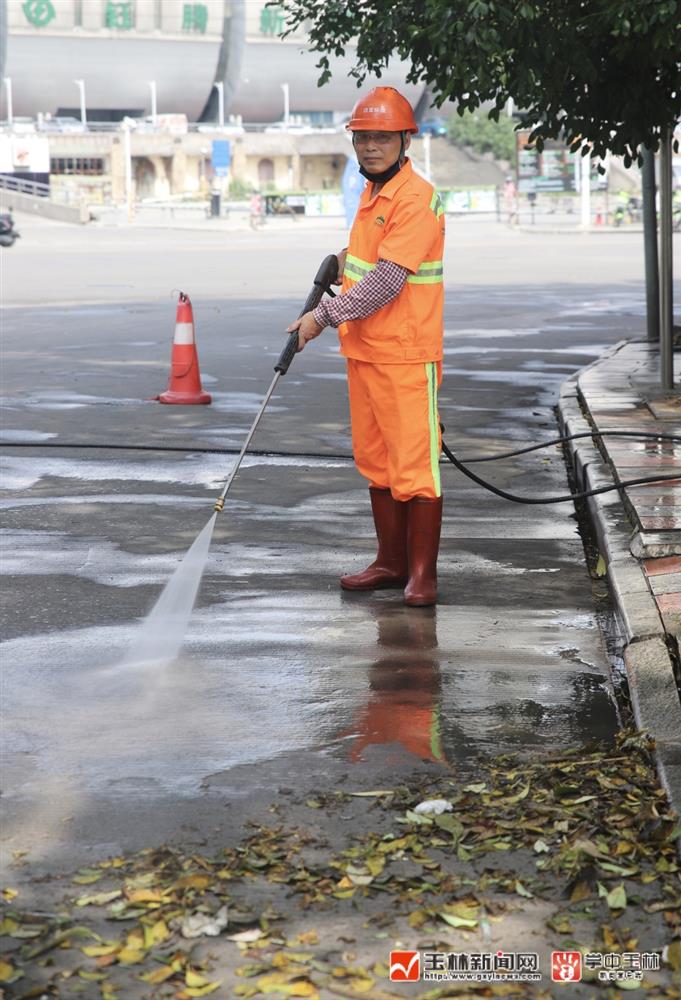 5 月 3 日午后,烈日炙烤下的玉林城区江南大道热浪蒸腾。洁亚环保玉林项目部梁永管驾驶着小高压水车,熟练地冲刷路面上的油污和垃圾,他的橙色工作服在阳光下熠熠生辉,汗水湿透了衣衫。这是他在劳动节期间坚守岗位的第三天,也是玉林城区 1800 名环卫工人假期工作的真实写照。他们避开正午最毒的日头,却避不开一次次被汗水浸透的工作服,衣服湿了干,干了湿,早已成为习惯。梁永管在作业时,总是细致入微,先放置三角锥提醒过往车辆,耐心劝离路边摊贩,还把垃圾桶冲洗得干干净净,每天往返垃圾中转站补水四次,用 4 车水换来街道的整洁。